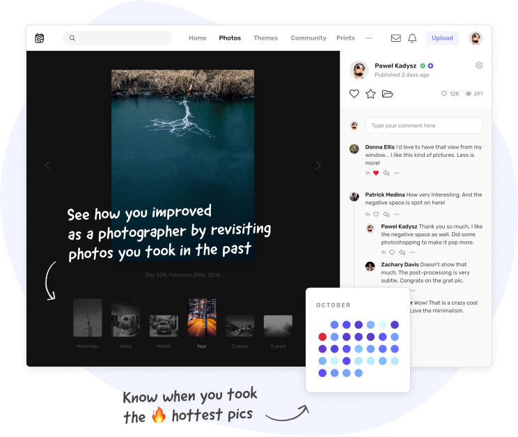 Revisit your photos every day. Don't loose a memory ever again. Track how your photography improves day by day.